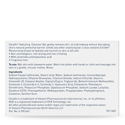 Sodium Cocoyl Isethionate, Stearic Acid, Water, Sodium Isethionate, Cocamidopropyl Hydroxysultaine, Ethylene Brassylate, Titanium Dioxide, Sodium Chloride, Glycerin, Ceteareth-20, Cetearyl Alcohol, Caprylic/Capric Triglyceride, Behentrimonium Methosulfate, Ceramide 3, Ceramide 6-II, Ceramide 1, Hyaluronic Acid, Cholesterol, Petrolatum, Dimethicone, Potassium Phosphate, Dipotassium Phosphate, Sodium Lauroyl Lactylate, Disodium EDTA, Phenoxyethanol, Methylparaben, Propylparaben, Phytosphingosine, Carbomer, Xanthan Gum.