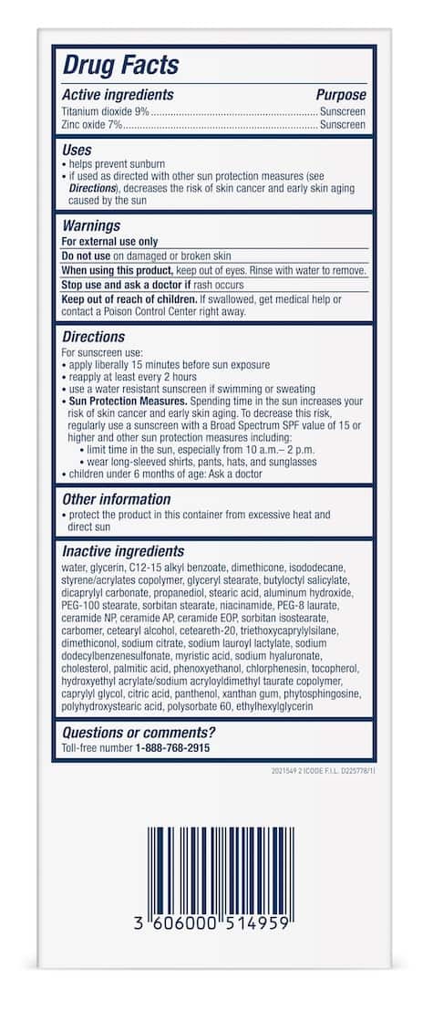 Water, Glycerin, C12-15 Alkyl Benzoate, Dimethicone, Isododecane, Styrene/acrylates Copolymer, Glyceryl Stearate, Butyloctyl Salicylate, Dicaprylyl Carbonate, Propanediol, Stearic Acid, Aluminum Hydroxide, Peg-100 Stearate, Sorbitan Stearate, Niacinamide, Peg-8 Laurate, Ceramide Np, Ceramide Ap, Ceramide Eop, Sorbitan Isostearate, Carbomer, Cetearyl Alcohol, Ceteareth-20, Triethoxycaprylylsilane, Dimethiconol, Sodium Citrate, Sodium Lauroyl Lactylate, Sodium Dodecylbenzenesulfonate, Myristic Acid, Sodium Hyaluronate, Cholesterol, Palmitic Acid, Phenoxyethanol, Chlorphenesin, Tocopherol, Hydroxyethyl Acrylate/sodium Acryloyldimethyl Taurate Copolymer, Caprylyl Glycol, Citric Acid, Panthenol, Xanthan Gum, Phytosphingosine, Polyhydroxystearic Acid, Polysorbate 60, Ethylhexylglycerin